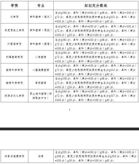 其他专业第一志愿考生执行教育部发布的《2023年全国硕士研究生招生考试考生进入复试的初试成绩基本要求》b类考生分数线对应要求,享受少数民族照顾政策的考生执行对应的享受少数民族照顾政策分数线,总分≥251分,单科(满分=100分)≥30分,单科(满分>100分)≥45分。